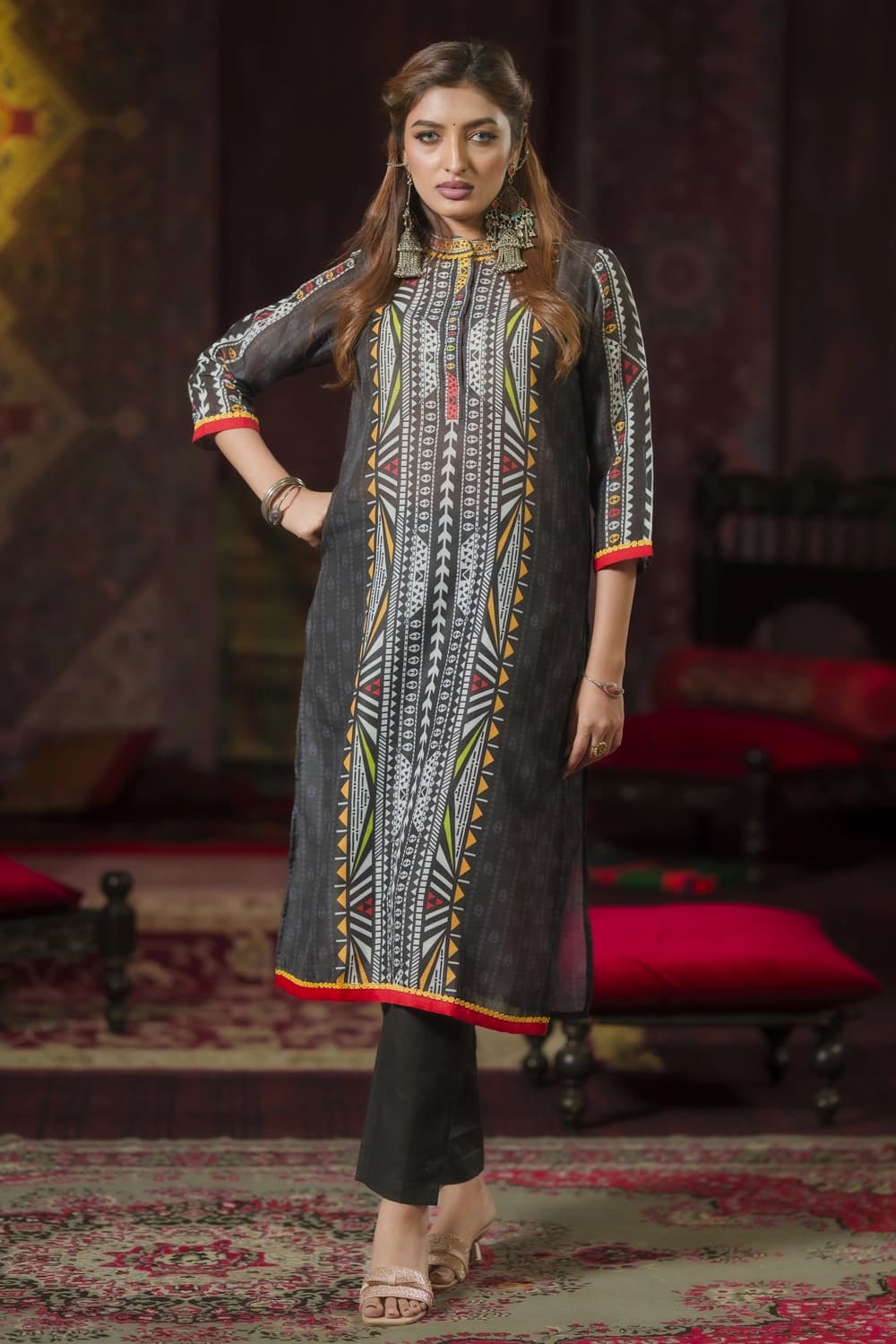 Elevate your elegance with Bishworang’s stunning three-piece set, crafted from premium fabrics. Featuring a beautifully designed kurta, matching bottom, and a stylish dupatta, this ensemble is perfect for any festive or casual occasion. Shop the latest three-piece dresses online and embrace timeless fashion.