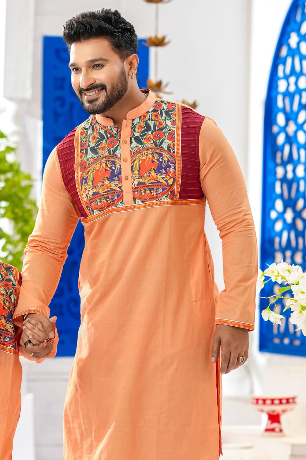 Stay stylish and comfortable with this Panjabi from BishwoRang. Made from soft Andy Cotton, it features fine cutwork and patchwork detailing—perfect for festive and formal occasions.