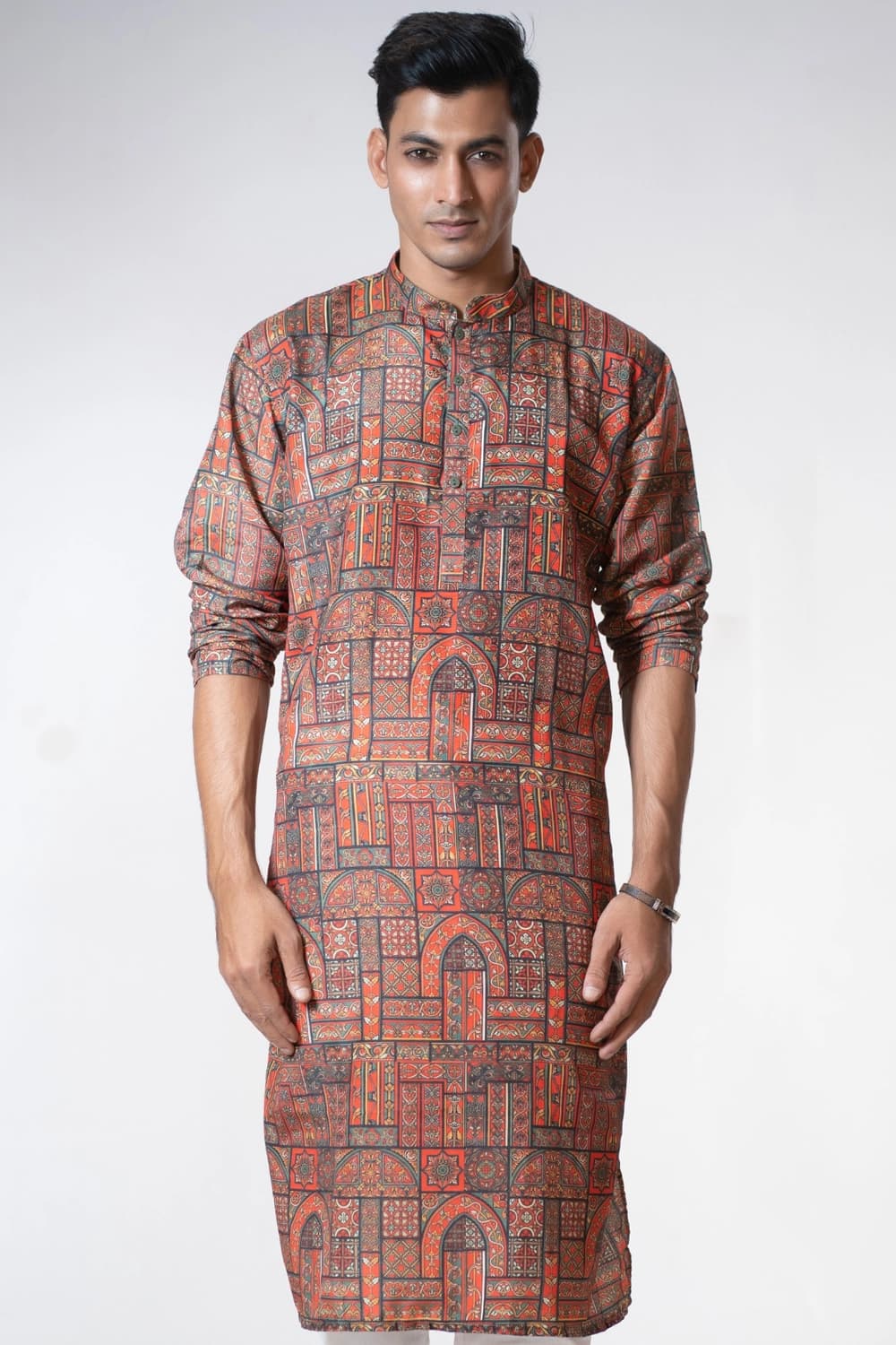 Stay stylish and comfortable with this cream Panjabi from BishwoRang. Made from soft Andy Cotton, it features fine cutwork and patchwork detailing—perfect for festive and formal occasions.