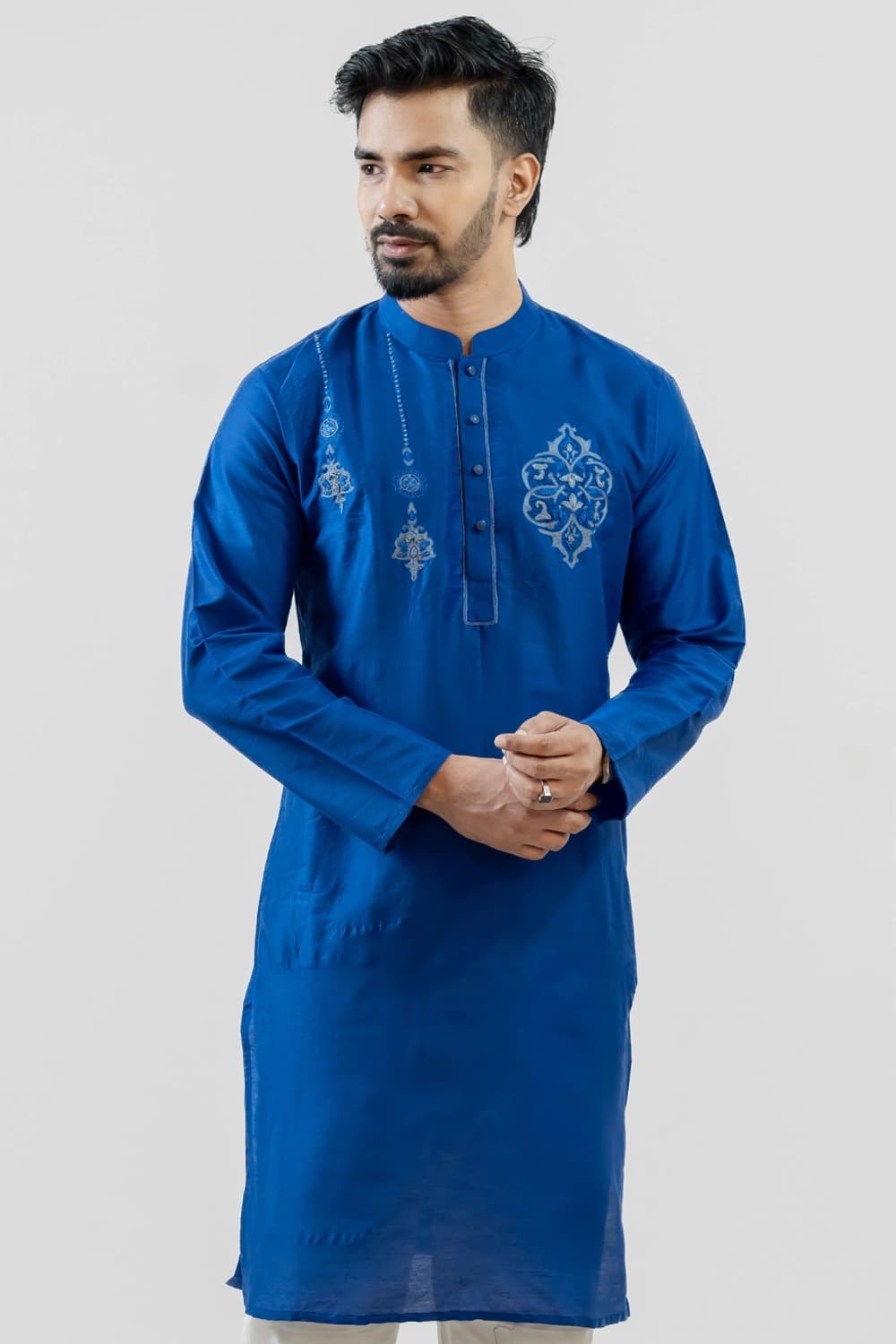 Stay stylish and comfortable with this cream Panjabi from BishwoRang. Made from soft Andy Cotton, it features fine cutwork and patchwork detailing—perfect for festive and formal occasions.