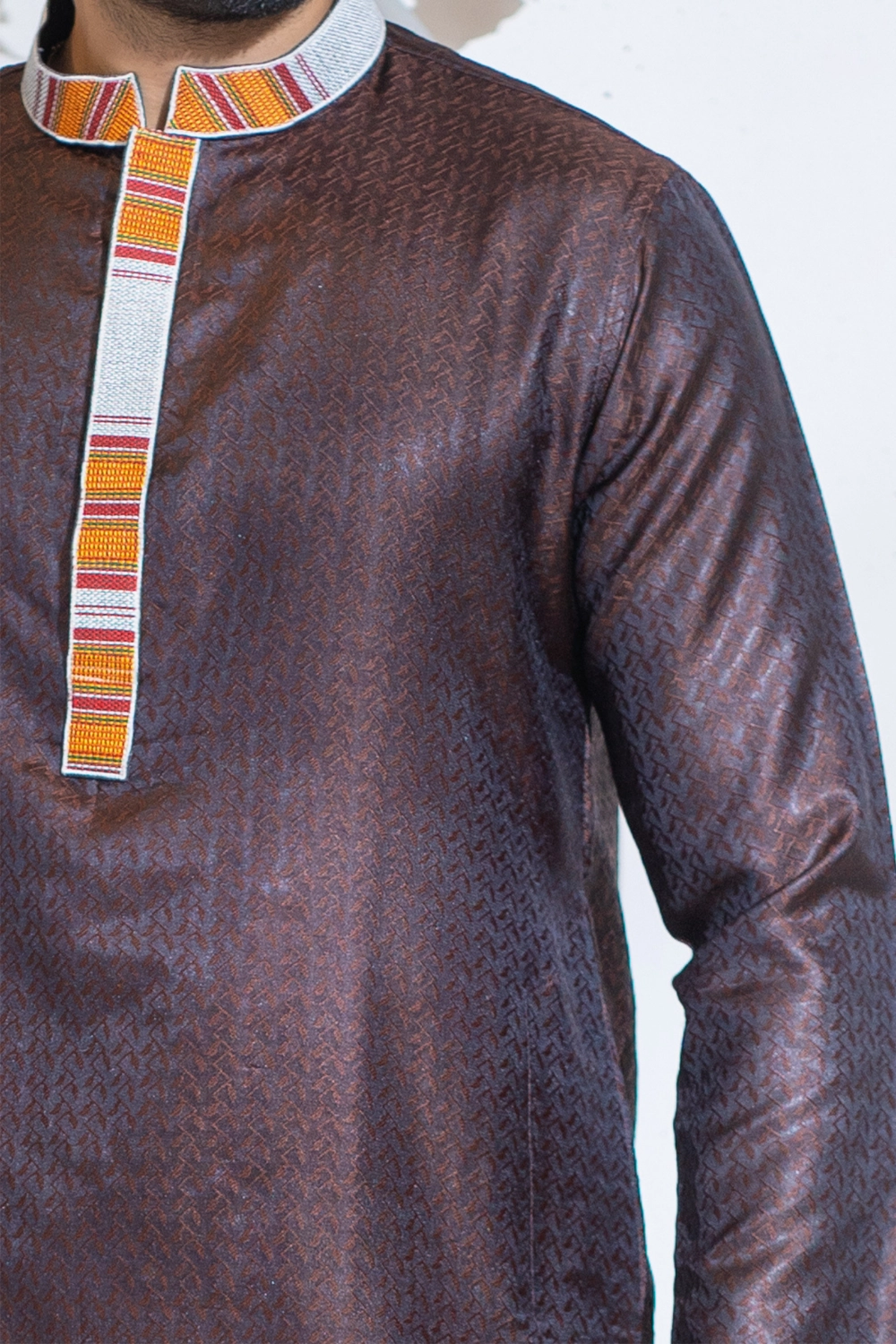 Stay stylish and comfortable with this cream Panjabi from BishwoRang. Made from soft Andy Cotton, it features fine cutwork and patchwork detailing—perfect for festive and formal occasions.