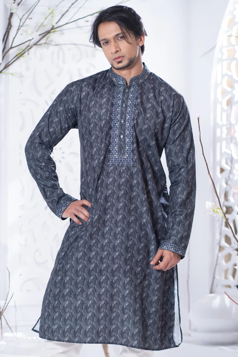 Stay stylish and comfortable with this cream Panjabi from BishwoRang. Made from soft Andy Cotton, it features fine cutwork and patchwork detailing—perfect for festive and formal occasions.