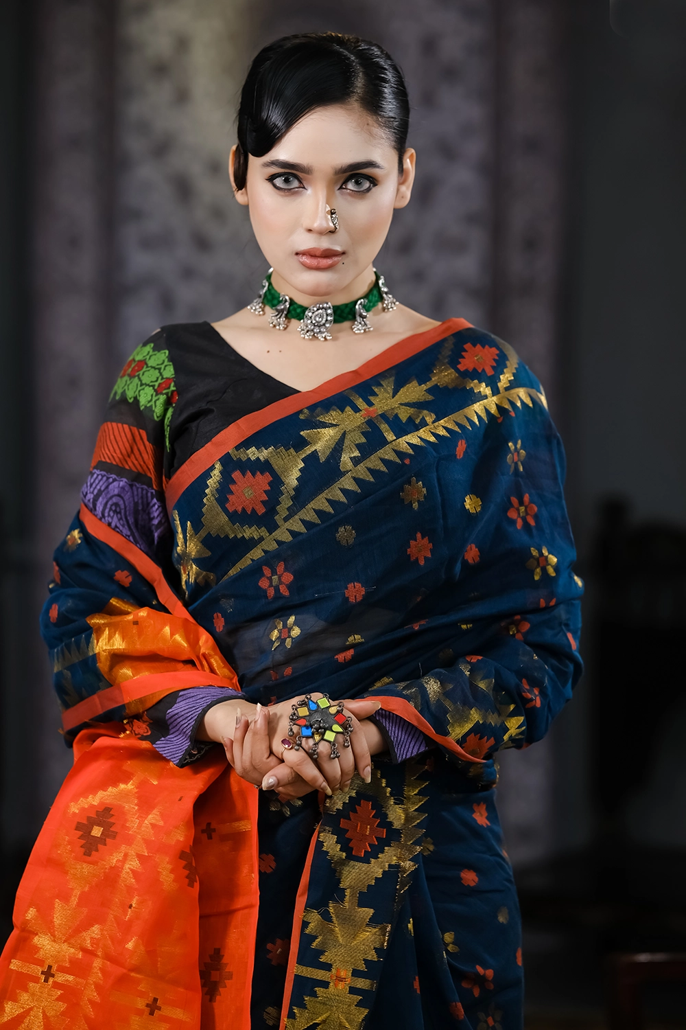 Designed for comfort as much as style, the lightweight fabric keeps you relaxed throughout the day in every season. Whether you are dressing for Eid, Puja, weddings, cultural programs, or formal gatherings, this saree blends tradition with easy elegance. Pair it with handcrafted jewelry, a statement blouse, or minimal accessories to create a polished festive or formal look.