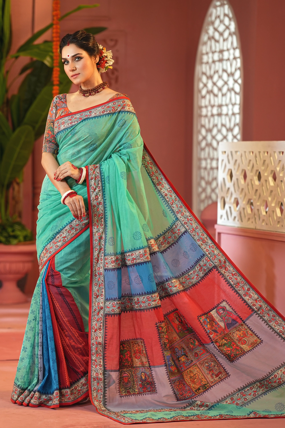 "ঐতিহ্য আর আভিজাত্যের মিলন – এই পূজায় BishwoRang শাড়ির সাথে সাজুক আপনার প্রতিটি মুহূর্ত।"
