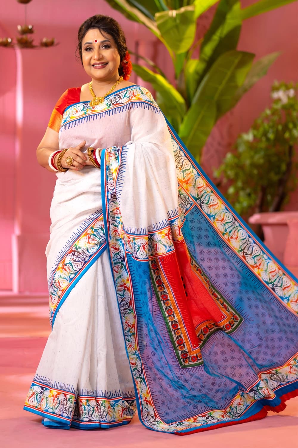 Grace draped in colors of heritage – BishwoRang Sharee for the soul that loves tradition.