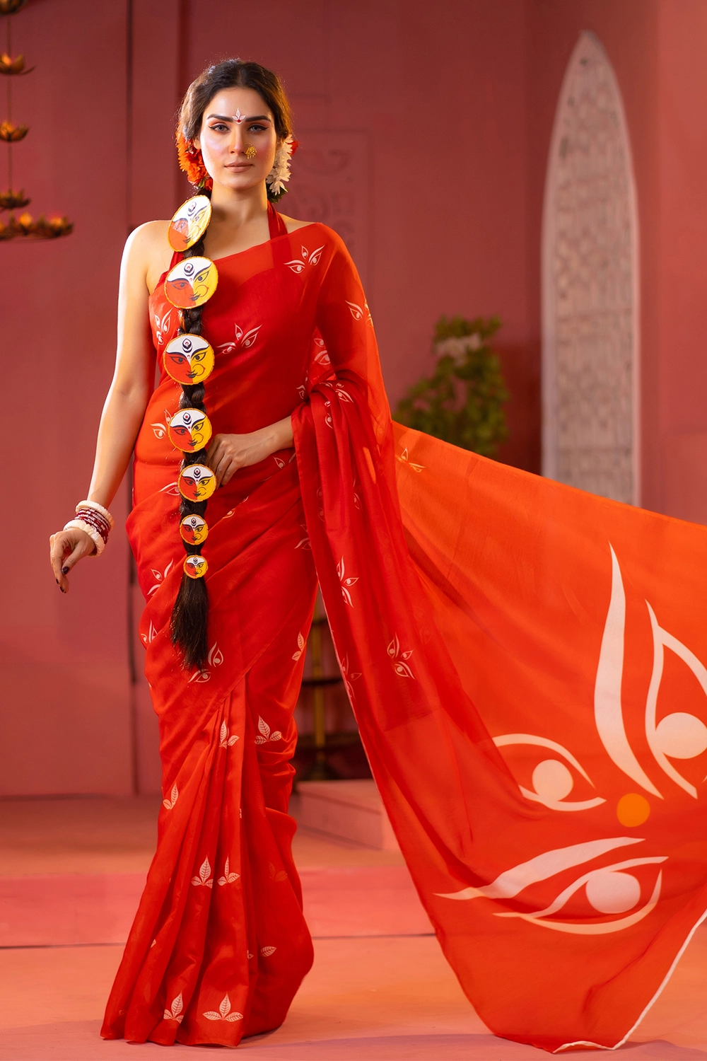 "ঐতিহ্য আর আভিজাত্যের মিলন – এই পূজায় BishwoRang শাড়ির সাথে সাজুক আপনার প্রতিটি মুহূর্ত।"