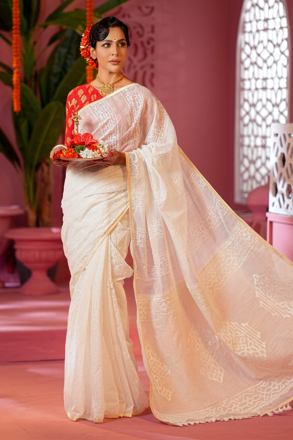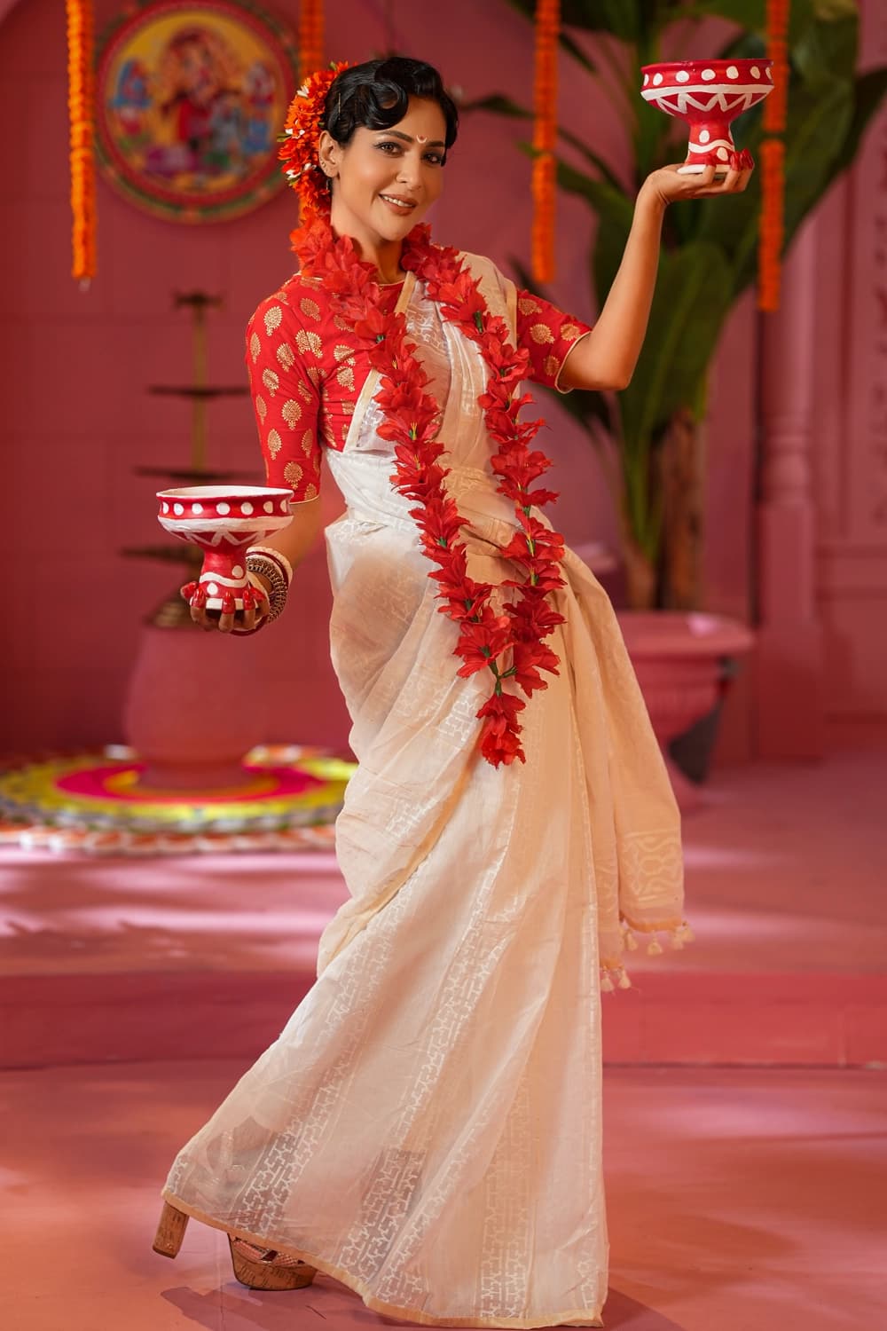 "Grace draped in colors of heritage – BishwoRang Sharee for the soul that loves tradition."