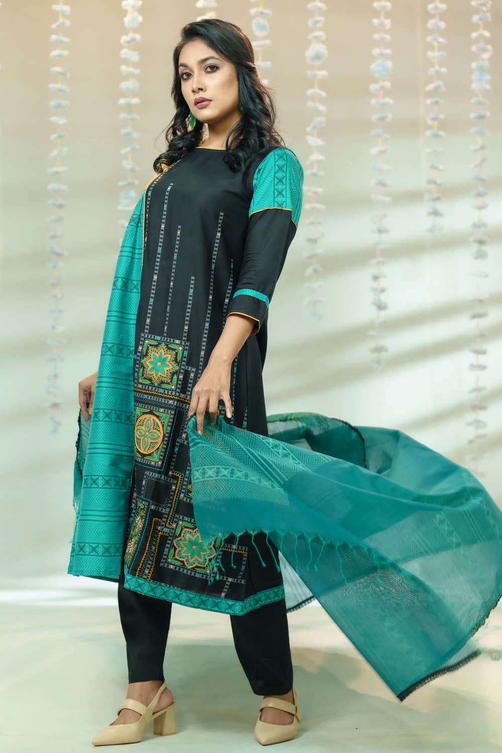 Elevate your elegance with Bishworang’s stunning three-piece set, crafted from premium fabrics. Featuring a beautifully designed kurta, matching bottom, and a stylish dupatta, this ensemble is perfect for any festive or casual occasion. Shop the latest three-piece dresses online and embrace timeless fashion.