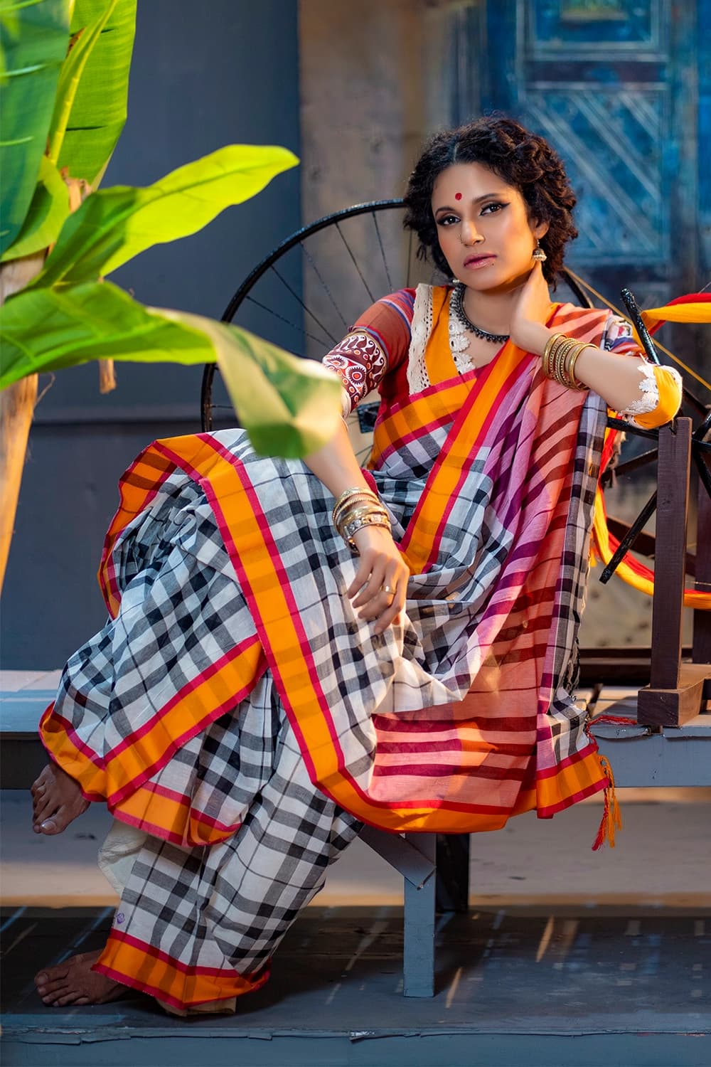 Bangladeshi handloom saree, multi color handloom saree BD, deshi fashion saree, traditional saree Bangladesh, festive saree online, ethnic handloom saree, Eid saree, Puja saree, cultural event saree, formal saree BD